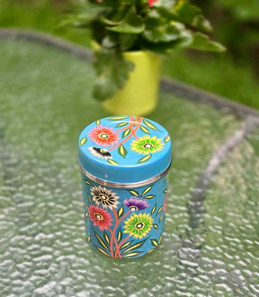 Grande boîte de conservation peinte à la main - Bleu florale