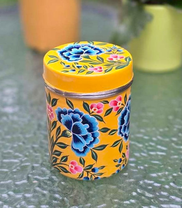 Grande boîte de conservation peinte à la main - Jaune
